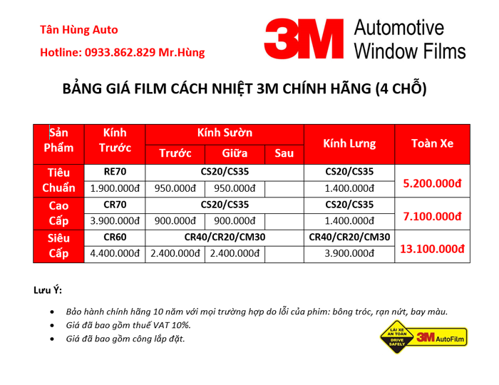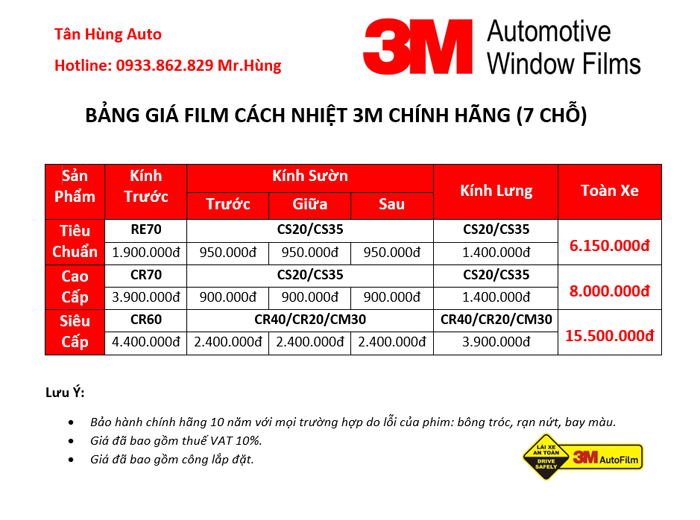 Vì thời tiết nắng nóng, nhiệt độ cao tại Việt Nam mà không ít chủ xế phải lo lắng không yên trước những hậu quả khó lường mà ảnh hưởng từ môi trường mang lại cho người sử dụng ô tô. Luôn thấu hiểu và đầu tư nghiên cứu thị trường, các nhà sản xuất phụ kiện cao cấp của Mỹ đã cho ra đời dòng sản phẩm phim cách nhiệt ô tô 3M nhằm xóa tan lo âu của đông đảo khách hàng thuộc thị trường Việt Nam. Sản phẩm phim cách nhiệt 3M từ lâu đã là cái tên thương hiệu nổi tiếng và được sử dụng rộng rãi nhất trong giới yêu xế hộp tại Mỹ nói riêng hay quốc tế nói chung. Lựa chọn sử dụng phim cách nhiệt 3M sẽ là giải pháp hoàn hảo giúp bảo vệ bạn cũng như các thành viên trong gia đình một cách tốt nhất.